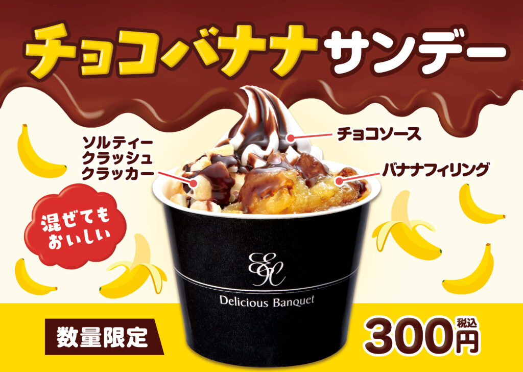 たっぷり贅沢バナナにサクサクのソルティークラッシュクラッカー、そしてチョコソースをたっぷりかけたら甘いとしょっぱいが混ざって恋の予感!?